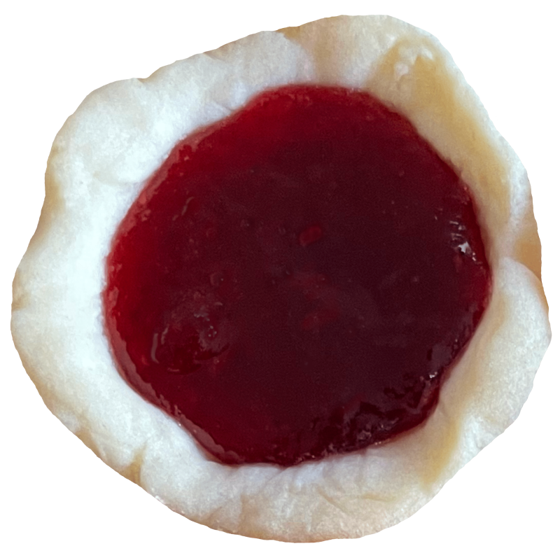 Raspberry Jam (Apple, Plum, Gelling Agent (440), Acidity Regulator (330), Raspberry, Flavour, Preservative (202), Colour (122, 124)), Wheat Flour, Vegan Butter (Vegetable Oil, Water, Salt, Emulsifiers, Natural Flavour, Vitamins A, D, E, Natural Colour), Sugar, Corn Flour, Vanilla Extract